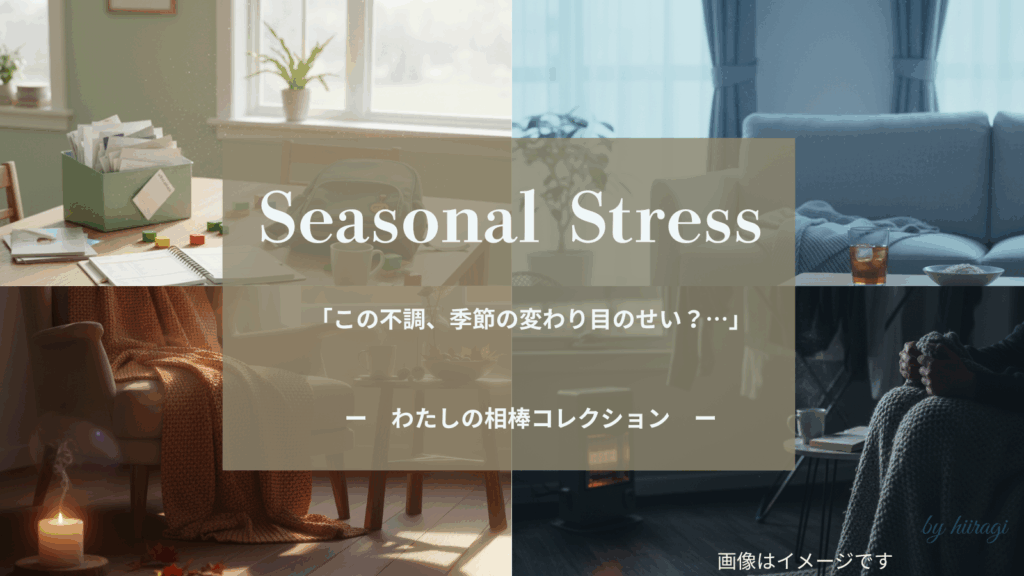 Seasonal Stress(季節ストレス)は、気温・湿度・日照時間・気圧変化によって自律神経や体内リズムが乱れ、だるさ・睡眠の質低下・気分の落ち込み・冷えやむくみなどが生じる状態です。