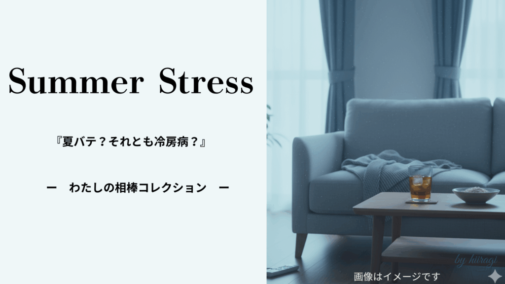 Summer Stress(夏ストレス)は、暑さや湿度の高さ、温度差によって体がうまく順応できず、心身のバランスを崩す状態を指します。外は猛暑、室内は冷房という環境差が、自律神経に大きな負担をかけています。